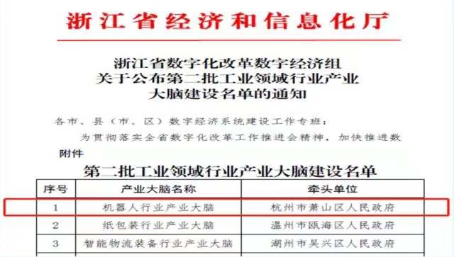 機(jī)器人行業(yè)產(chǎn)業(yè)大腦”項(xiàng)目成功入選,是杭州市唯一一個入選的產(chǎn)業(yè)大腦!
