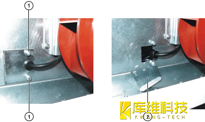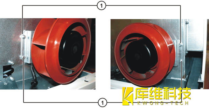 5. 將風扇支架 (1) 連同風扇一起取下。