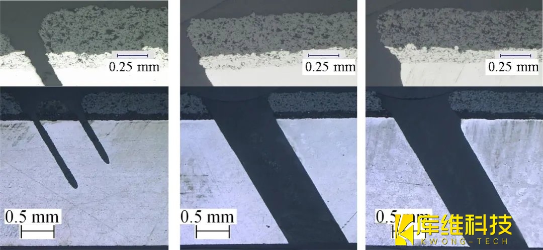 圖4、不同螺旋鉆孔軌道數(shù)的水導(dǎo)激光鉆孔橫切面圖像